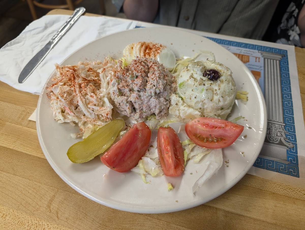 For the main course, you'll find a diverse selection of traditional Greek dishes. One standout is the lamb gyro, tender and flavorful, served in a warm pita with a medley of toppings. The roasted lamb is perfectly seasoned, with a subtle smokiness that pairs beautifully with the creamy tzatziki. If you're in the mood for something heartier, the moussaka is a must-try. This layered casserole of eggplant, ground meat, and béchamel sauce is both rich and comforting, a dish that feels like a home-cooked meal from a Greek grandmother’s kitchen.